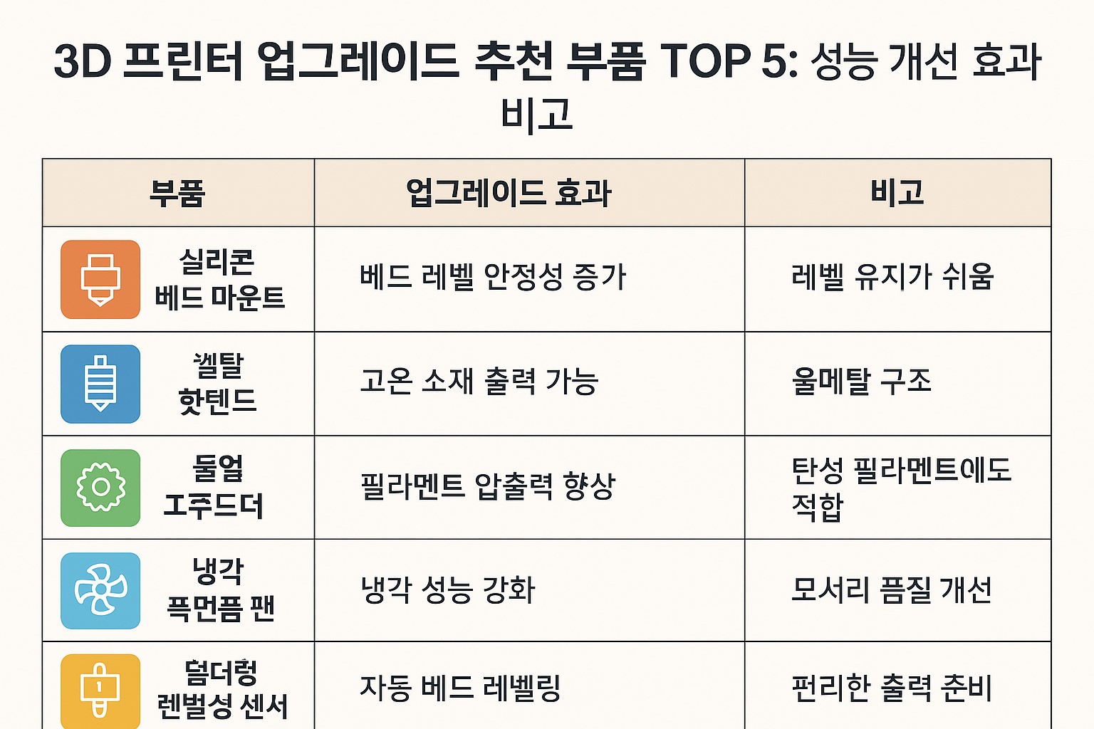 이들은 모두 업그레이드 효과가 확실하고, 출력 품질과 편의성 모두를 개선해주는 핵심 부품들입니다.